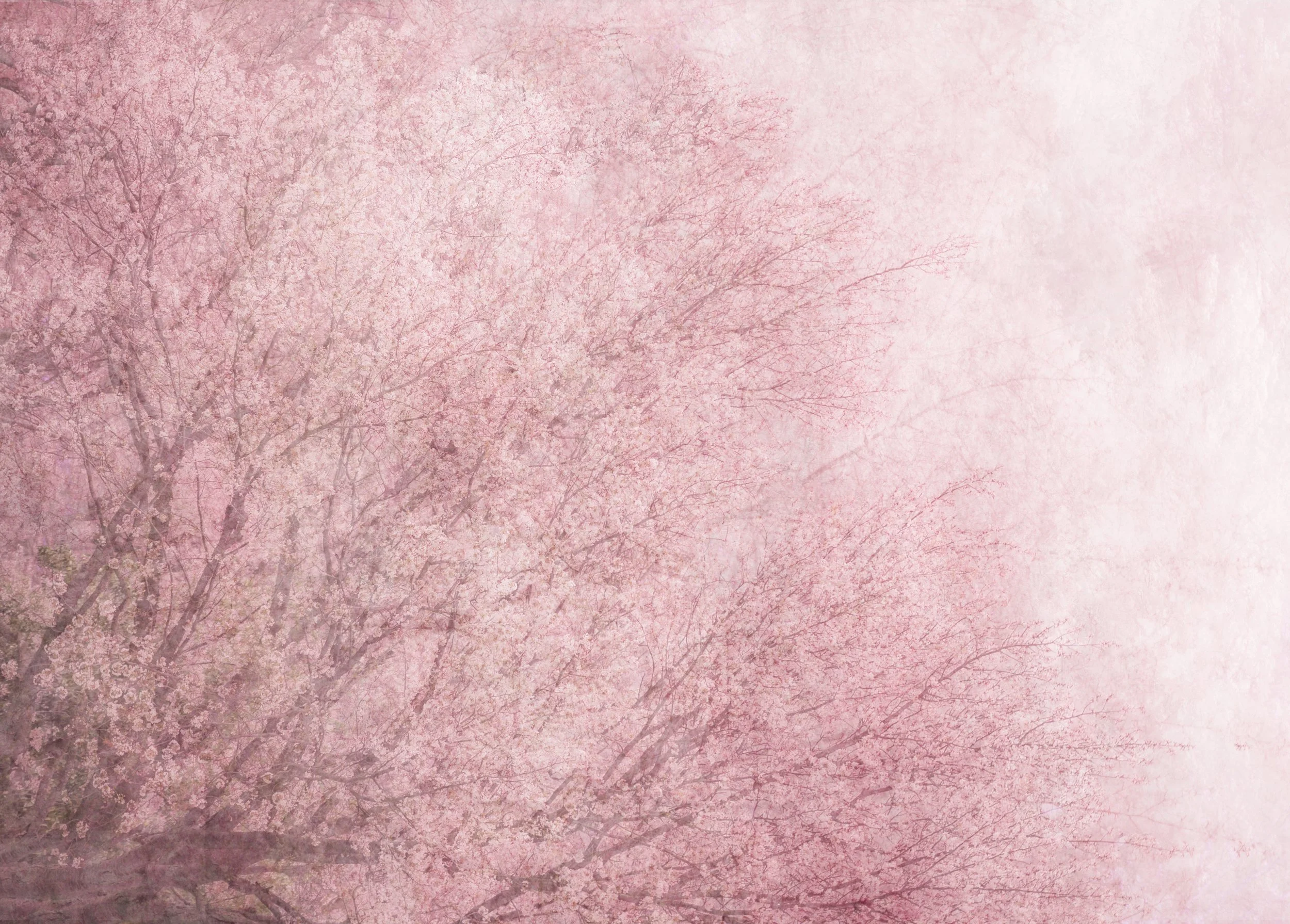 I remember an early spring morning from my childhood, wandering quietly beneath the cherry blossoms as a soft mist drifted through the air. Their delicate petals seemed to fade gently into a veil of light and haze, and to my innocent mind, the blossoms almost appeared shy.